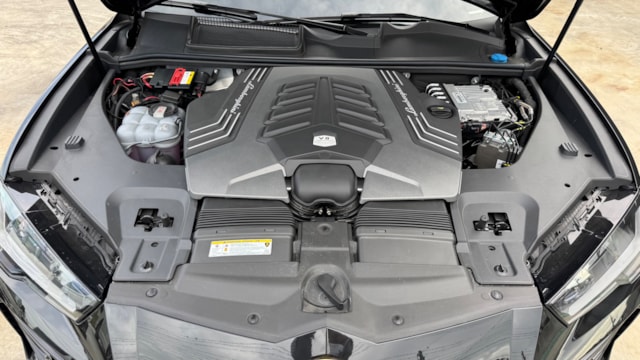 ■2022年式 ランボルギーニ ウルス 最高出力 650ps(478kW)/6000rpm 最大トルク 86.7kg・m(850N・m)/2250~4500rpm 種類 V型8気筒ツインターボ 総排気量 3996cc 内径X行程 86mm×86mm 圧縮比 ---- 過給機 ツインターボ 燃料供給装置 ---- 燃料タンク容量 ----リットル 使用燃料 無鉛プレミアムガソリン