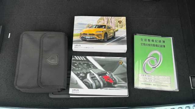 「ネロ・ヘレーヌの艶やかなボディに宿る、徹底したこだわり」 コーンズ認定中古車という素性の良さに加え、追加されたオプションの数々がこの個体の価値を物語っています。 特に「ビッグインテリアカーボンパッケージ」による車内の質感向上と、足元を飾る23インチTaigeteホイールの組み合わせは、ウルスをより精悍に引き立てます。 屋内保管されていたことで、ネロ・ヘレーヌの深い黒とボディコーティングの輝きが見事に維持されています。 記録簿も完備されており、次に所有されるオーナー様にとっても、ランボルギーニの世界を存分に楽しめる理想的な一台と言えるでしょう。