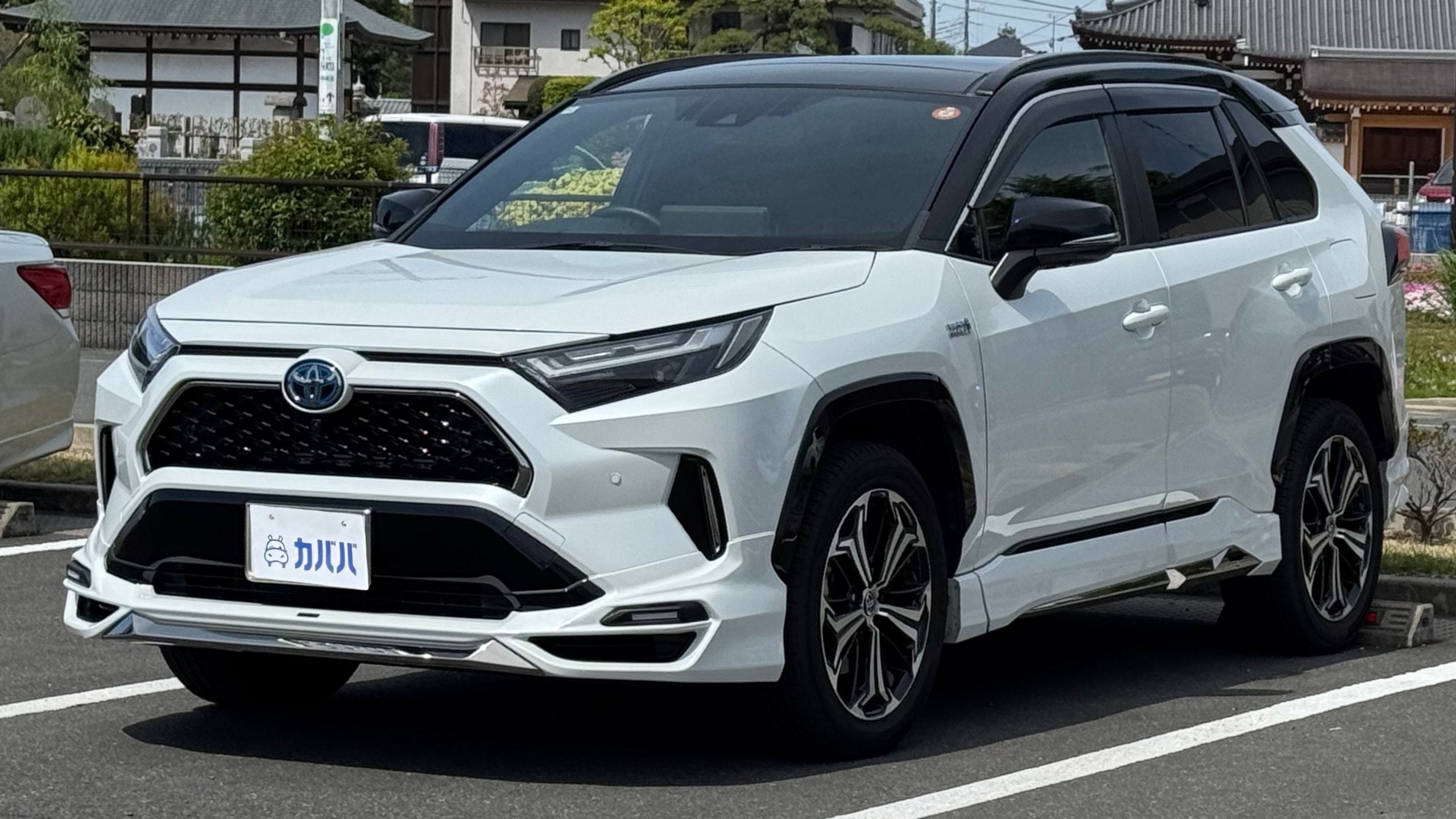 2026年4月現在、2024年式の同条件のRAV4 PHV Zは440万前後です。ただ今回の本車両は高額なモデリスタエアロやサンルーフを備えた人気仕様です。2.1万km走行という点を除けば、保証継承も可能な高年式個体と非常に高い付加価値を備えています。
