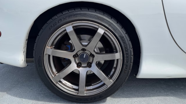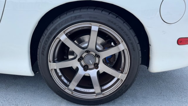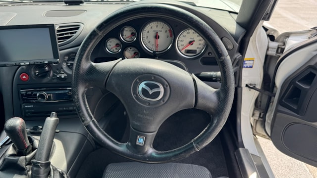 【車両おすすめ装備】 ■足回り・ブレーキ ・サスペンション:TEIN MONO SPORT ・リアピロポール:アッパー&ロアアーム、ドーリンクのピロ・ブッシュ類を2022年にナイトスポーツにて全て新品交換(納品書あり)。 ・ブレーキローター:DIXCEL FSスリットローター(2025年6月新品交換) ・ブレーキパッド:ENDLESS MX72(2025年6月新品交換) ・ブレーキマスターシリンダー:新品交換済み(3年程前だと記憶しています) ■吸排気系 ・マフラー:フジツボレガリス(車検対応) ・エアクリーナー:HKSパワーフロー ■タイヤ・ホイール 〜夏用セット〜(現在装着中) ・ホイール:ENKEI PFO7 ダークシルバー(F17x8.5J+35/R:17x9.5J+30) ・タイヤ:TOYO PROXES R1R(F:225/45R17/R:245/40R17) (2025年8月 新品交換) 〜冬用セット〜 ・ホイール:マツダ純正16インチ ・タイヤ:ブリヂストン BLIZZAK VRX 205/55R16(22年22週製造.2023年装着) ■インテリア・装備 ・ヘッドライト:LEDバルブへ交換済み。 ・ナビゲーション:旧型モデル 「carrozzeria」につきルート案内はスマホの方が便利ですが、地デジ放送およびDVD視が可能です。車内スピーカーより音声出力も可能です。 ■冷却系・電装系・その他持病対策 ・冷却系:KOYOレーシングラジエタータイプS(2020年10月交換) ・空調系:ヒーターコア新品交換(2024年6月)。テンパーチャーアクチュエイター新品交換(納品書あり)。 ・電装系;オルタネーターを社外リビルト品へ交換(2025年8月)。スパークプラグ交換(2025年10月)。 ・シフト:シフトダストブーツ、シフトカラー・ブッシュを新品交換(納品書あり)。 ・ブローバイ対策:CUSCO オイルキャッチタンク装着。 ■付属純正パーツ(次期オーナーの方へお渡し可能) ・純正サスペンション(※ダストブーツ等に破れあり) ・純正エアクリーナーボックス ※上記のほか冬タイヤセットなど付属品ご希望の場合は着払いでの対応になりますのでご了承下さい。 【車両詳細について】 ◼︎マツダ純正リビルトエンジン搭載 走行距離10万kmのタイミングで、「マツダ純正のリビルトエンジン」への載せ替えを実施し、実走8.5万キロのエンジンです。また、出品直前の2026年4月にロータリー車に特化したショップ「ナイトスポーツ」にて部品交換を行い、エンジンの圧縮とターボ制御系(ソレノイド)の不安が解消されております。 ■最新メンテチンス内容(2026年4月ナイトスポーツにて実施、納品書あり) ・バキュームユニット新品交換。 ・ソレノイドバルブ新品交換(計2箇所:ターボコントロールソレライド、パージソレノイド)。 ・コンピューダー診断(エラーコード)のクリア。 ■エンジンコンディション ・圧縮値(2026年2月ナイトスポーツにて計測、納品書あり):1箇所8.0/その他すべて7.9(ばらつき無し)。バランス良好。 2002年式 マツダ RX-7 タイプR バサースト がカババに出品です! 時を超えた美しさを放つ流線型のボディと、マツダの技術を象徴するロータリーエンジンで、JDMカルチャーの一角を担うFD3S型のRX-7。 上位グレードRS同等280馬力の性能を与えられたタイプRをベースに、ボディはRS比で20kg軽量、圧倒的なパワーウェイトレシオを誇るモデルでございます! 【車両状態】 左Fドア.Rフェンダーの一部に再塗装歴があります。(綺麗な仕上がりです) 右フロントフェンダー:過去にタイヤとの干渉跡があり、DIYにて錆止め剤塗布の上タッチアップ済みです。わずかにフェンダー縁のめくれが見られますが、現在の車高とタイヤサイズの組み合わせで実用上の問題がないことを確認済みです。 ⚪︎外装 ・フロントガラス/バンパー飛び石 ・フロントエアロ塗装剥がれ/下擦り傷 ・ホイール全輪ガリ傷 ・右Fフェンダー小傷 ・ドアミラー/ドアエッジ小傷 ・右Fドア/Rフェンダーに軽微なへこみ ・リアウィング小傷タッチペン ・バックドア小傷 ・左Rフェンダータッチペン跡 ・左Fフェンダー軽微なへこみ ・下回り軽微な傷へこみ ・サイドステップ傷 上記見受けられます。年式や走行距離を考慮すると塗装状態・コンディション良好です。 ⚪︎内装 座席の使用感/天張使用による汚れ/後席座面の傷/灰皿の浮き/ハンドルスレなど見られます。内装に関しては年式相応の使用感がありますが、日常使用でフロントのみ使用する場合に気になりにくいレベルです。 においに関しては現在、禁煙車利用のために気になるものは感じられませんでした。 ※本車両は10年以上前(10万km以上)の車両のためノークレームノーリターンのお取引となりますので、予めご了承ください。 また本車両に対する予防整備(消耗品等)の不具合、劣化等に関しては免責事項となります。
