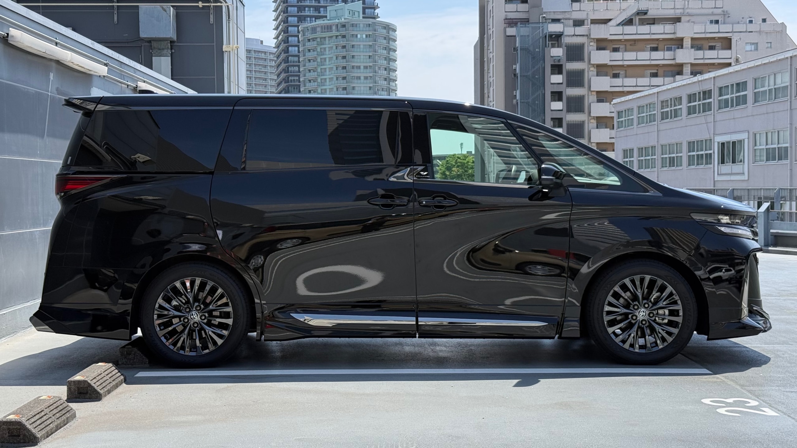 2024年式 トヨタ ヴェルファイア ハイブリッド Zプレミア 4WD ドア数 5ドア 乗員定員 7名 型式 6AA-AAHH45W 全長×全幅×全高 4995×1850×1945mm ホイールベース 3000mm トレッド前/後 1600/1605mm 室内長×室内幅×室内高 3005×1660×1360mm 車両重量 2250kg エンジン型式 A25A-FXS 最高出力 190ps(140kW)/6000rpm 最大トルク 24.1kg・m(236N・m)/4300~4500rpm 種類 直列4気筒+モーター 総排気量 2487cc 内径X行程 87.5mm×103.4mm 過給機 なし 燃料供給装置 筒内直接+ポート燃料噴射装置(D-4S) 燃料タンク容量 60リットル 使用燃料 無鉛レギュラーガソリン