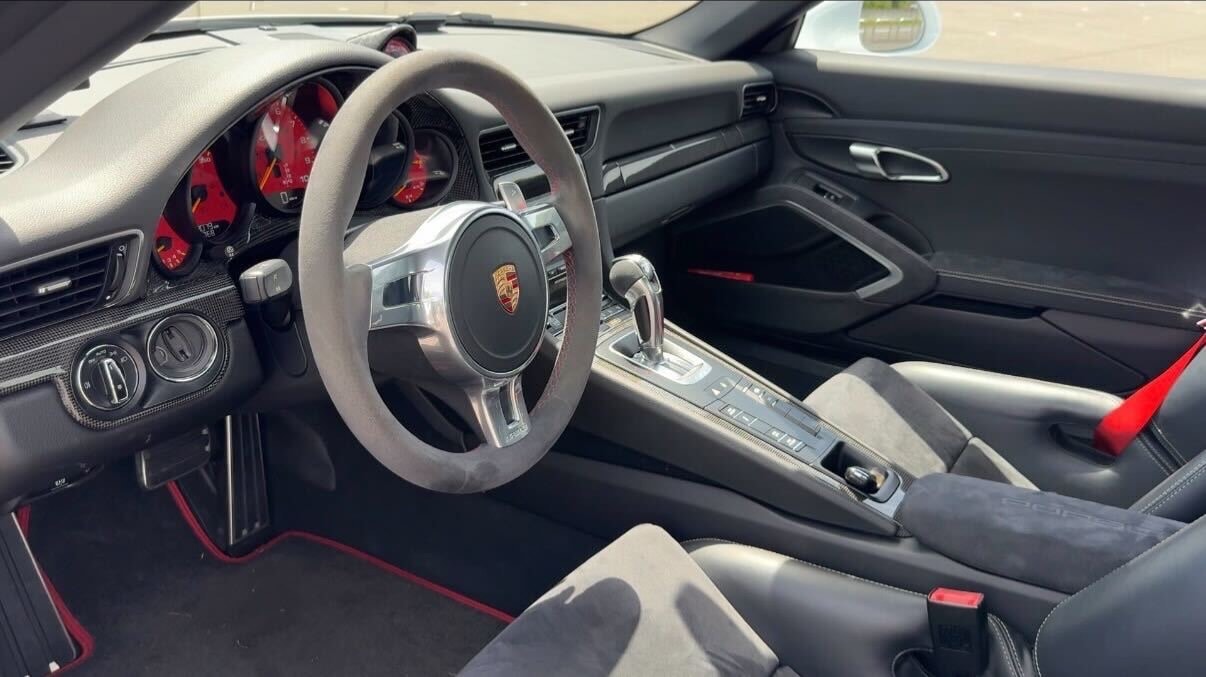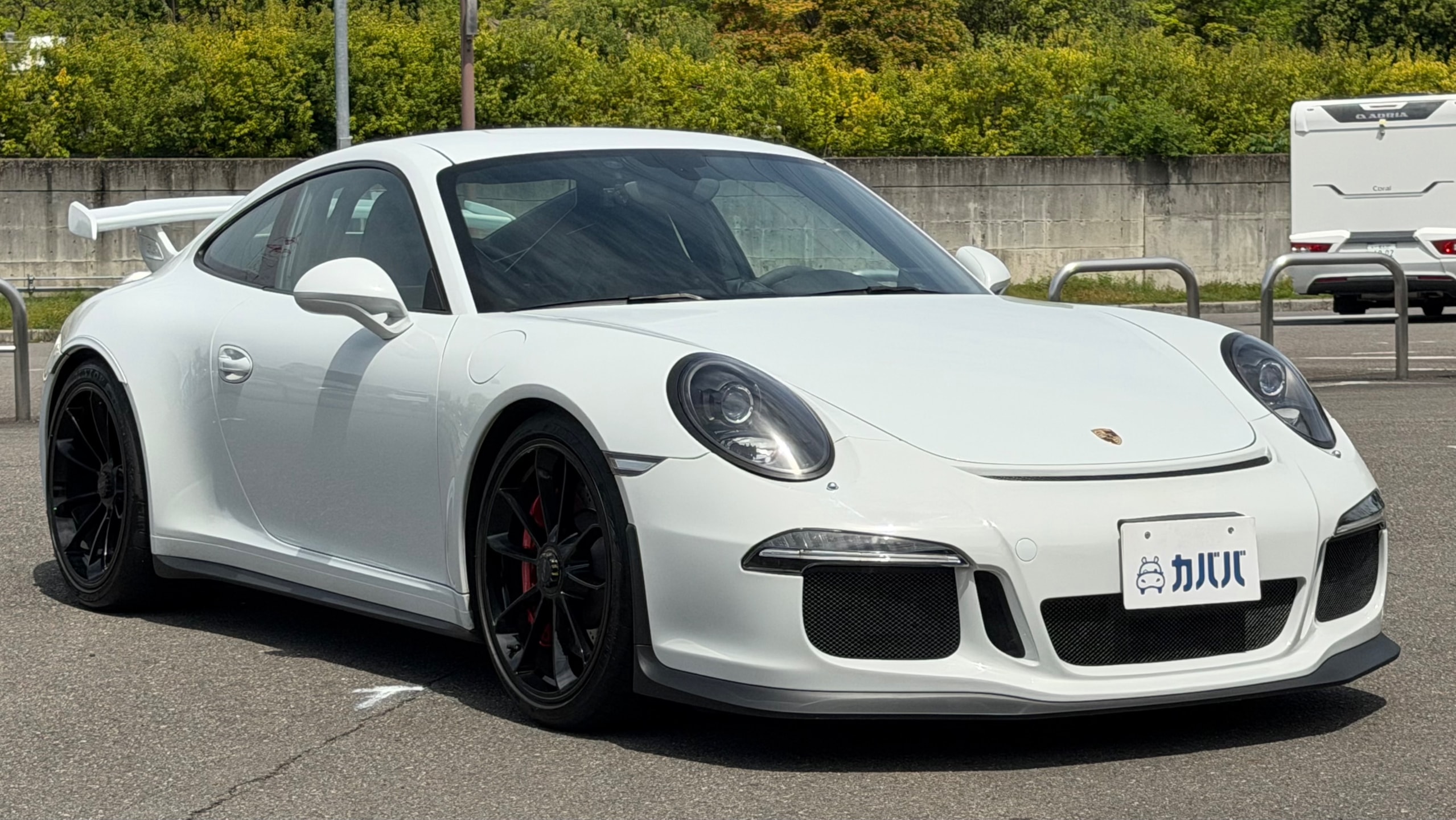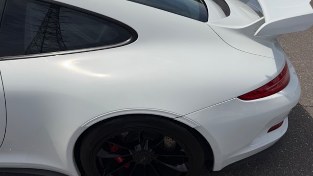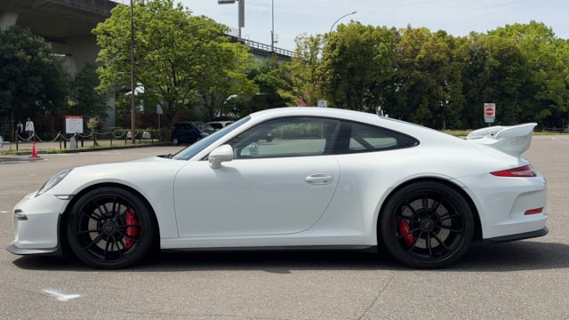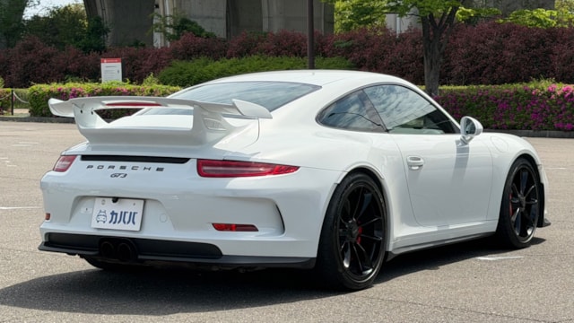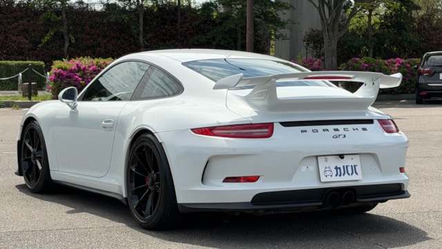 【オプション装備】 ◾︎クラブスポーツパッケージ -リアロールゲージ ◾︎スポーツバケットシート ◾︎スポーツクロノパッケージ ◾︎スポーツエグゾーストシステム ◾︎フロントリフトアップシステム ◾︎ホイールブラックペイント仕上げ ◾︎レッドキャリパー ◾︎インテリアカーボン ◾︎スカッフプレートカーボン ◾︎レッドメーター ◾︎カラーシートベルト ◾︎純正Clarionナビ ◾︎バックモニター ◾︎ドライブレコーダー ◾︎レーダー探知機 ◾︎ プロテクションフィルム施工(ボンネット/Frフェンダー/サイドミラー) 【車両紹介】 2015年式のポルシェ911 GT3は、911シリーズの中でも高性能モデルとして位置付けられ、専用の3.8Lエンジンを搭載し、最高出力475馬力(350kW)を発揮します。高回転まで一気に吹け上がるエンジン特性により、ダイナミックで刺激的な走行性能を実現している点が大きな特徴です。 また、GT3は左ハンドルのみの設定となっており、より本格的なスポーツドライビングを意識した仕様となっています。高出力エンジンを軸に、911シリーズの中でも際立つパフォーマンスを持つモデルとして仕上げられている1台です。 【本車両のここがおすすめ】 ホワイトボディにブラックペイントホイールとレッドキャリパーの組み合わせが映える、GT3らしいスポーティな外観が魅力です。さらにフロントリフターが装備されており、日常使いでの利便性にも配慮されています。内装にはオプションでカーボンがふんだんに採用され、差し色のレッドと相まって特別感のある空間に仕上がっています。加えてスポーツバケットシートやクラブスポーツパッケージなど走りを意識した装備も充実しており、ドライビングプレジャーを高めてくれます。フロント部分にはプロテクションフィルム施工済みで外装コンディションが保たれている点も嬉しいポイントです。 【車両状態】 -ガラスのキズ・状態- 軽微な飛び石傷はありますが、車検に影響のある大きな破損なし。 -外装- ボンネット飛び石傷あり バンパー下擦りあり 左Rフェンダー小傷あり Rバンパー小傷あり 右F右Rホイール小傷あり -エンジン音と振動- 取材時のアイドリングは非常に安定しており、異音や不自然な振動は確認取れませんでした。 -内装- 特に大きな傷等もなく、全体的には非常に綺麗な状態を維持しています。 -車内・エアコンのニオイ- 清潔感のある車内を維持しており、タバコ臭・ペット臭など、不快なニオイは一切確認できませんでした。 本車両は初度登録から15年経っていないため新車購入時とは関係なく、途中加入できるスタンドアローン保証に加入することができます。個人売買ながらポルシェで保証を受けることができる点も本車両の魅力となっております。 加入費用はポルシェサイトにてご確認いただけます。