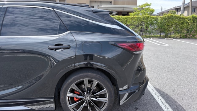 【車両オプション】 ◎電動スライディングパノラマサンルーフ ◎F SPORTS フロントスポイラー ◎F SPORTS サイドスカート ◎F SPORTS スポーツマフラー&リヤディフューザー ◎F SPORTS エアロダイナミクスミラーカバー ◎オレンジキャリパー ◎デジタルインナーミラー ✅パノラマルーフにTRDほぼフルエアロ!オプションてんこ盛りの1台! F SPORTは専用スポーツシートや走りを意識したセッティングに加え、快適装備も充実している点が特徴です。シートヒーター・ベンチレーションはなんと後席にも装備。先進安全装備、運転支援機能など日常で使いやすい装備も高い水準で整えられており、見た目だけではない完成度があります。高級SUVとしての快適性とスポーティグレードらしい引き締まった雰囲気を両立した仕様です。 本車両はオプション内容が非常に魅力的!人気の電動スライディングパノラマサンルーフをはじめ、フロントスポイラー・サイドスカート・スポーツマフラー&リヤディフューザー・ミラーカバーまでFSPORT(TRD)エアロを前後左右に装着。統一感ある仕上がりで、標準車との差がしっかり感じられる外観です! 足元にはオレンジキャリパーも備わり、細部までこだわりが行き届いています。デジタルインナーミラーも装備され、実用面も抜かりありません。 ✅ワンオーナーの安心感! 本車両はワンオーナー車で、これまでの点検記録簿ありと経歴が明らかで個人売買でも安心感のある1台です。購入時にはディーラーでコーティングを施工されており、購入後も追加費用なくコンディションを維持しやすいのもポイントです! 《最近の整備内容》メンテナンスは全てディーラー ・R7/8 1年点検 14189km エンジンオイル、オイルパンドレンプラグガスケット、オイルフィルター、ワイパーラバー、クリーンエアフィルタ交換 ・R8/4 半年点検 現行RXを選ぶなら、グレード・装備・出自のバランスまで重視したい方におすすめしたい内容です。見た目の完成度と日常での使いやすさをどちらも求める方へ、ぜひご検討いただきたい1台です。 【新車保証継承可能】 最寄りの正規ディーラーにて12ヶ月点検相当の法定点検(有償)を実施することにより、新車保証も継承可能なため個人売買ながらも安心してご購入いただけます。 【車両状態】 〇外装 ・左Rホイールガリ傷 ・左Rフェンダー小傷 いずれも目立ちにくいものとなっており、中古車として非常に良好な状態を維持されております。 〇内装 ・助手席前コックピット内張りに薄傷 ・助手席ドアハンドルに微小な塗装ハゲ いずれも概観を損ねるようなものではなく、全体として良好な状態が保たれております。 禁煙車のため気になる匂いは感じられませんでした。 ご自宅でペット(犬)を飼われているためアレルギーの方はご了承の上ご検討ください。なお取材時ペットの香りなどは一切感じられず、車内にも抜け毛は見受けられませんでした。 ※お手放し希望時期の関係で5/20以降のお手続き開始となります。その前でも購入申請は入れていただけます!いつでもお待ちしております!
