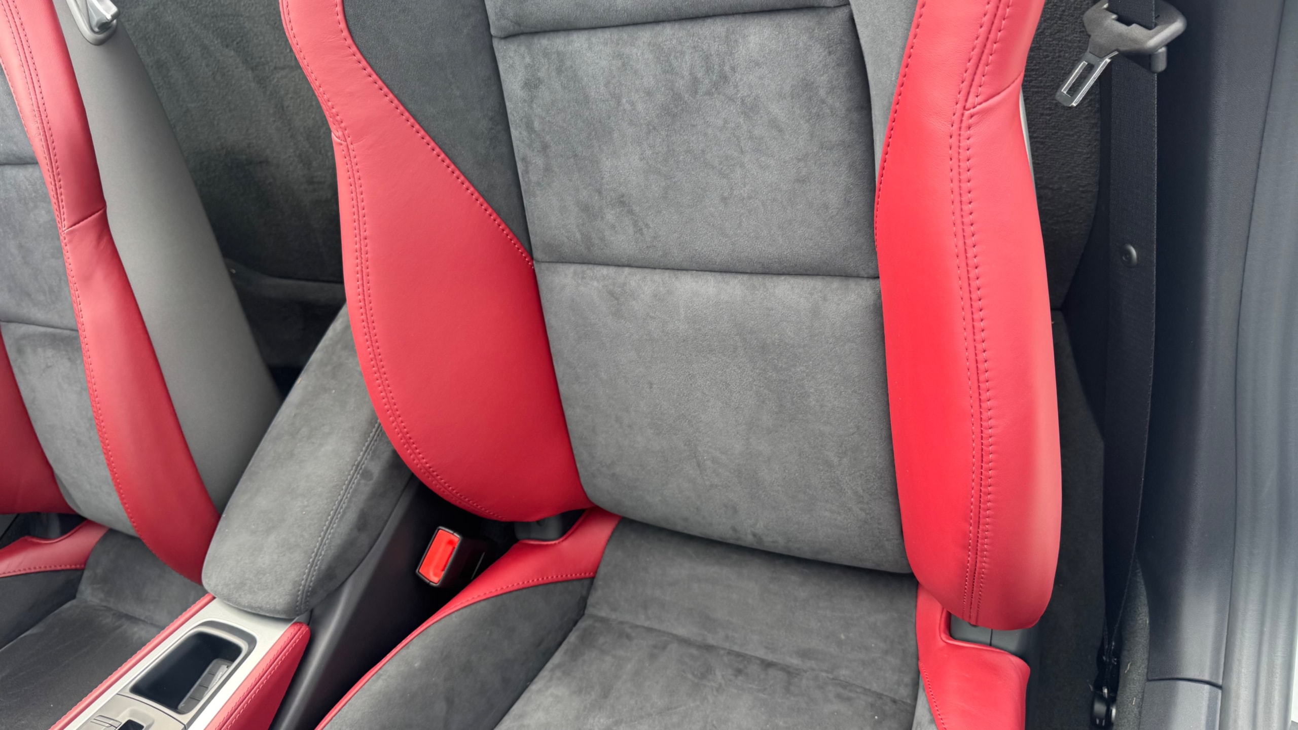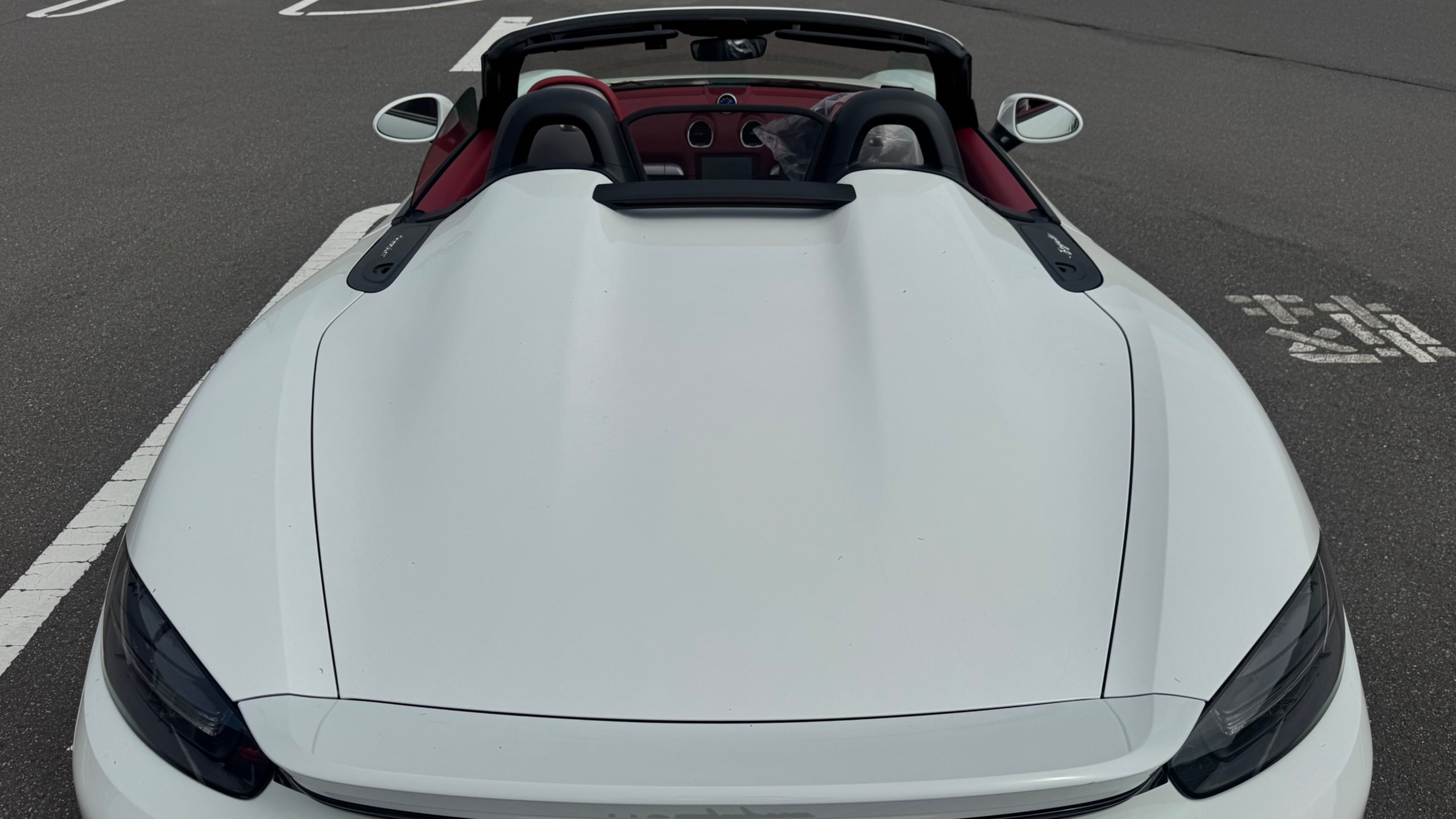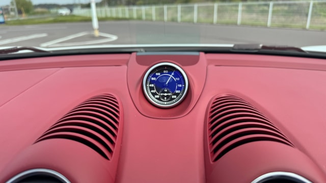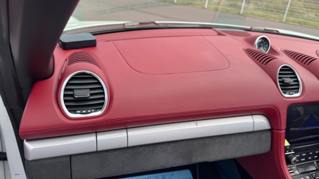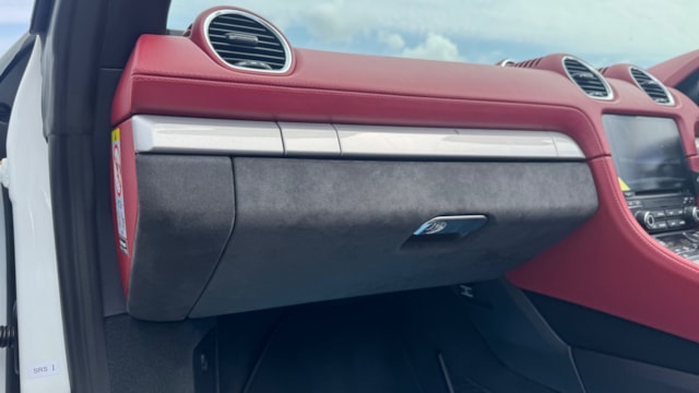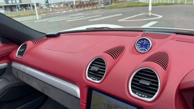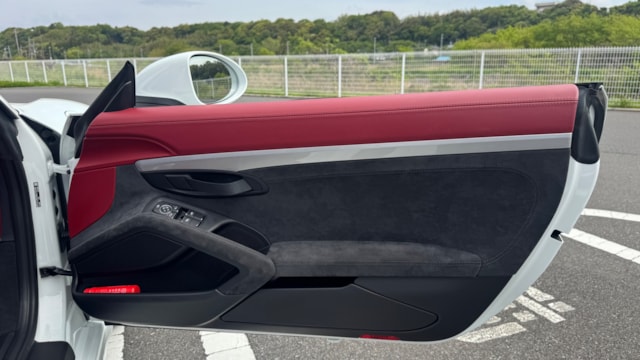 718スパイダーの中でも、本車両は内外装のバランスが非常に良い一台だと感じました。ピュアホワイトの爽やかなボディに、ボルドーレッド/ブラックのクラシックインテリアが映え、スポーツカーでありながら上品さも兼ね備えています。 また、シートヒーターが装備されている点もポイントで、オープンモデル特有の季節を選ぶという弱点をしっかりカバーしており、実用性も高い印象です。 走りを楽しみたい方はもちろん、所有する満足感や特別感を重視される方にも自信を持っておすすめできる一台です。