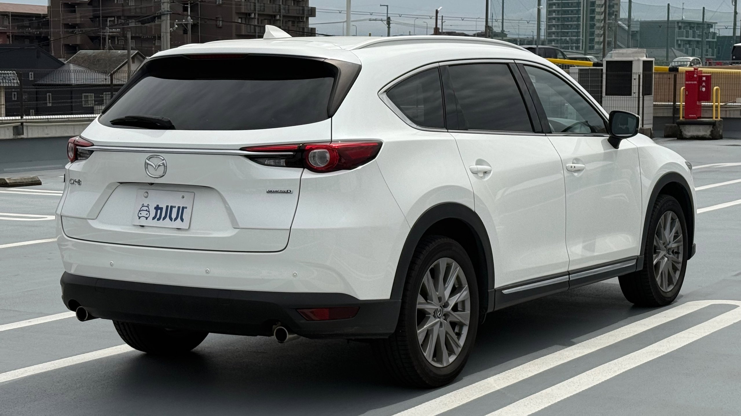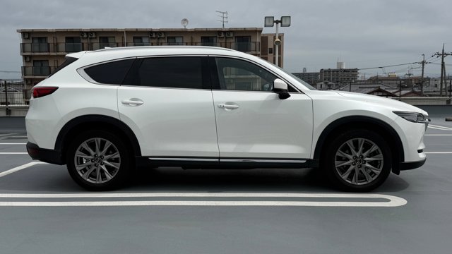 【おすすめ装備】 ・ルーフレール ・社外製フロントグリル ・ナビ用SDカード ・ドラレコ ・ETC ※取説・記録簿・スペアキーあり 【コーティング】 ・Crystal KeePer 2024年8月29日施工 【車両紹介】 2020年式CX-8 XD PROACTIVE Sパッケージは、マツダの国内SUVラインナップにおける最上位モデルCX-8の中でも、快適装備と実用性のバランスに優れたグレードです。「SKYACTIV技術」と「魂動 -Soul of Motion-」を採用し、洗練されたデザインと日常使いから長距離まで対応する走行性能を備えています。 本グレードは、上質さと使い勝手を両立した仕様が特徴で、3列目を含めたすべての乗員が快適に過ごせる設計となっています。さらに塗布型制振材の採用により雨音などの騒音を低減し、静粛性にも配慮されたモデルです。3列シートSUVとしての利便性と快適性をしっかり押さえた一台となっていおります。 【本車両のここがおすすめ】 ホワイトのボディカラーにルーフレールとフロントグリルが組み合わさることで、CX-8本来の上質さに加えてSUVらしい力強さも感じられる外観に仕上がっている一台です。ルーフレールが備わることでより一層迫力のある仕上がりとなっております。また9万km弱の走行ながら、内外装ともに良好なコンディションを保たれており、CX-8の持つ快適性と実用性を十分に体感できる一台です。 【車両状態】 -ガラスのキズ・状態- 軽微な飛び石傷はありますが、車検に影響のある大きな破損なし。 -外装- ボンネット飛び石あり Fバンパー飛び石傷あり 右Rドアエッジ傷あり バックドア小傷あり その他車両全体に爪に引っかからない線傷がございます。 -エンジン音と振動- 取材時のアイドリングは非常に安定しており、異音や不自然な振動は確認取れませんでした。 -内装- 特に大きな傷等もなく、全体的には非常に綺麗な状態を維持しています。 -車内・エアコンのニオイ- ペットをゲージに入れて乗車されておりますが、取材時点でペット毛は見受けられず、清潔感のある車内を維持しており、タバコ臭・ペット臭など、不快なニオイは一切確認できませんでした。 ※特記事項※ フロントカメラは社外製Fグリルに変更されているため正常な位置に取り付けられておりません。 純正グリル着払いにてお渡し可能です。必要な場合は事前にお問い合わせください。