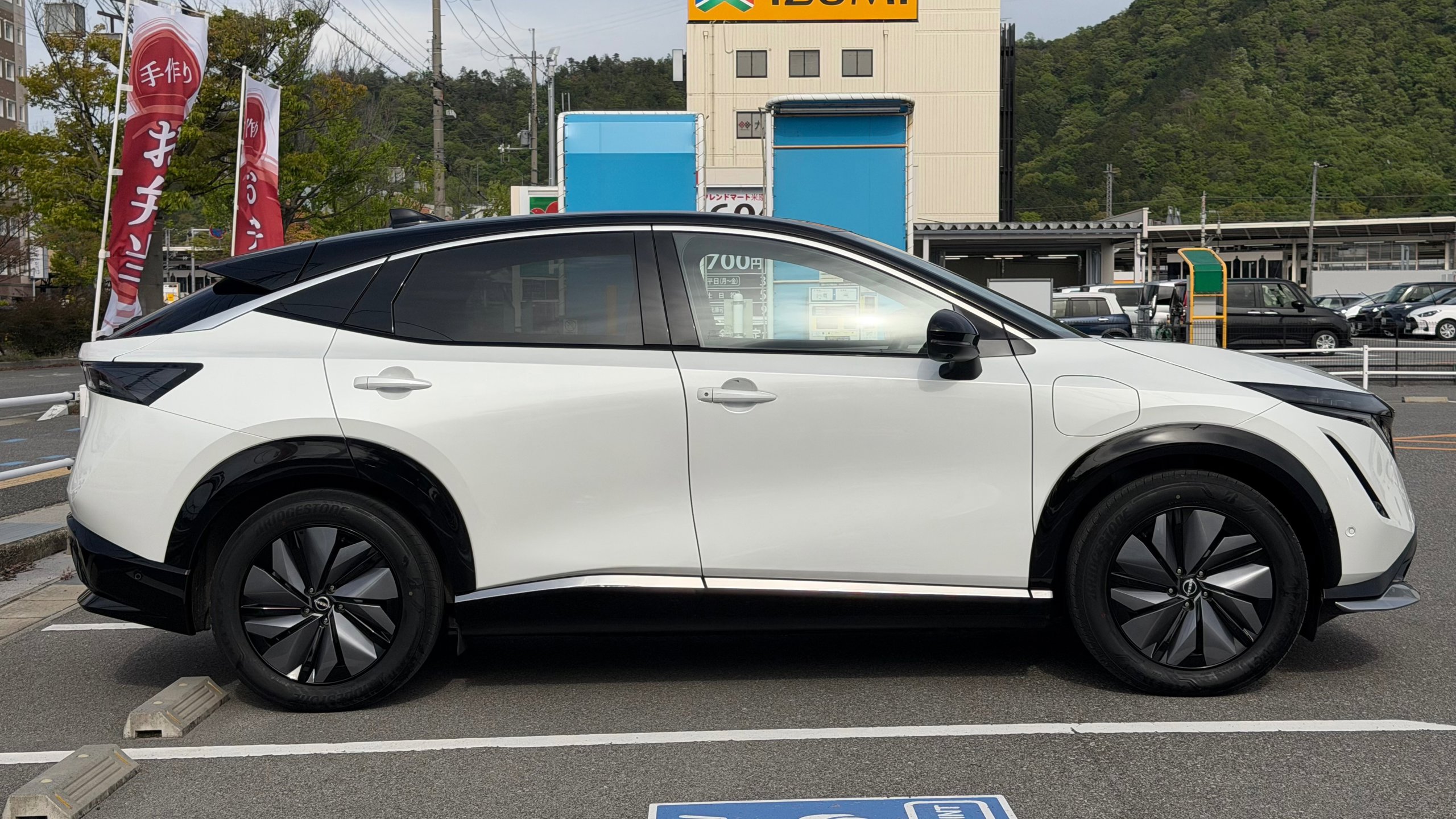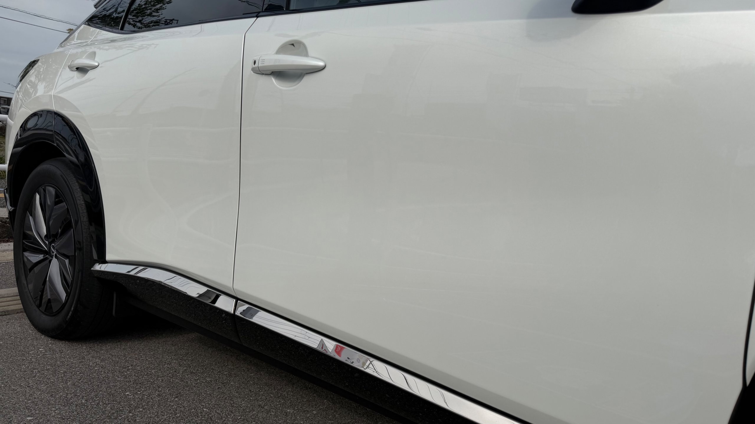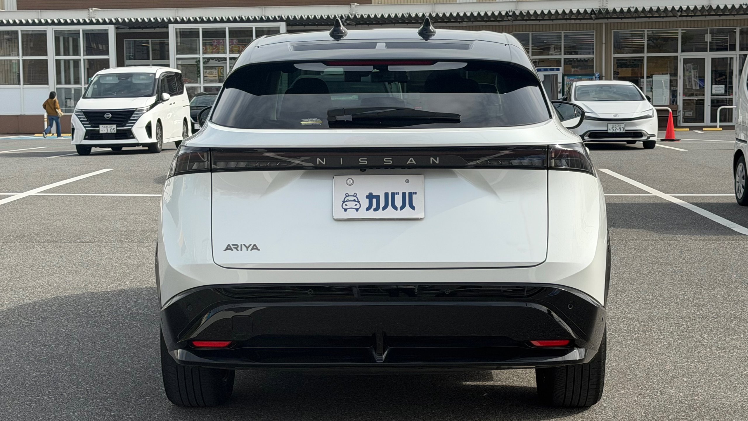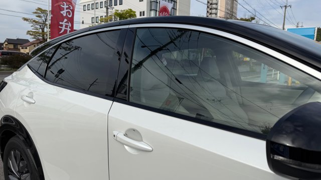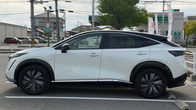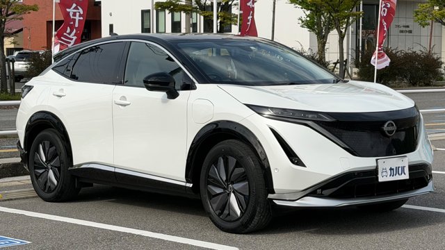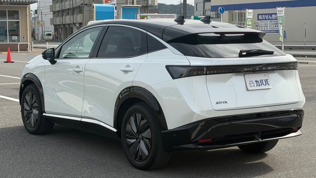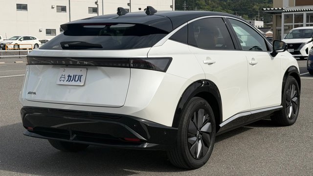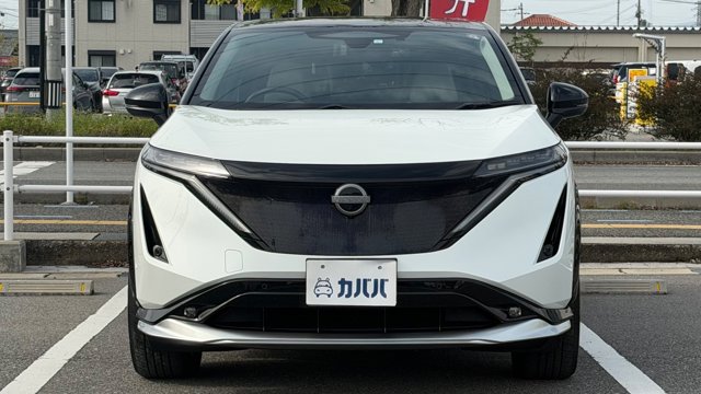 【おすすめ装備】 ・有償色 プリズムホワイト/ミッドナイトブラック ・プロパイロット2.0 ・パノラミックガラスルーフ ・純正フロントスポイラー ・純正フロアマット ・社外品サイドガーニッシュ ・前後ドラレコ ・スマホホルダー ・ETC 【車両紹介】 2023年式アリアは、電気自動車の技術とコネクテッド機能を融合させたクロスオーバーEVです。プロパイロット2.0による高度運転支援で長距離移動もストレスなくこなします。デザイン性と実用性を高次元で両立した一台です。 本グレードB6は、バッテリー容量66kWh、最高出力160kW、最大トルク300Nm、0-100km/h、加速は7.5秒を誇る前輪駆動(2WD) モデルとなっております。 【本車両のここがおすすめ】 有償色のホワイト×ブラックのツートーンカラーでスタイリッシュな仕上がりが魅力の一台です。さらに高額オプションであるプロパイロット2.0とサンルーフが搭載されていることで高速道路での自動運転と社内の快適性の両方をを兼ね備えております。オーナー様12Vバッテリーも新品交換と車検を通してのお渡しのため、乗り出し費用を抑えられ、かつ買ってすぐ安心してお乗りいただける点も非常に嬉しいポイントです。 【車両状態】 -ガラスのキズ・状態- 取材時点ガラスのキズは見受けられませんでした -外装- Fバンパー飛び石傷 右Rドア下部擦り傷 右サイドガーニッシュ擦り傷 右Rフェンダー擦り傷 左Rドア小傷 -内装- 運転席バイザーシミ汚れあり 助手席座面シミ汚れあり その他特に大きな傷等もなく、全体的には非常に綺麗な状態を維持しています。 -車内・エアコンのニオイ- 清潔感のある車内を維持しており、タバコ臭・ペット臭など、不快なニオイは一切確認できませんでした。