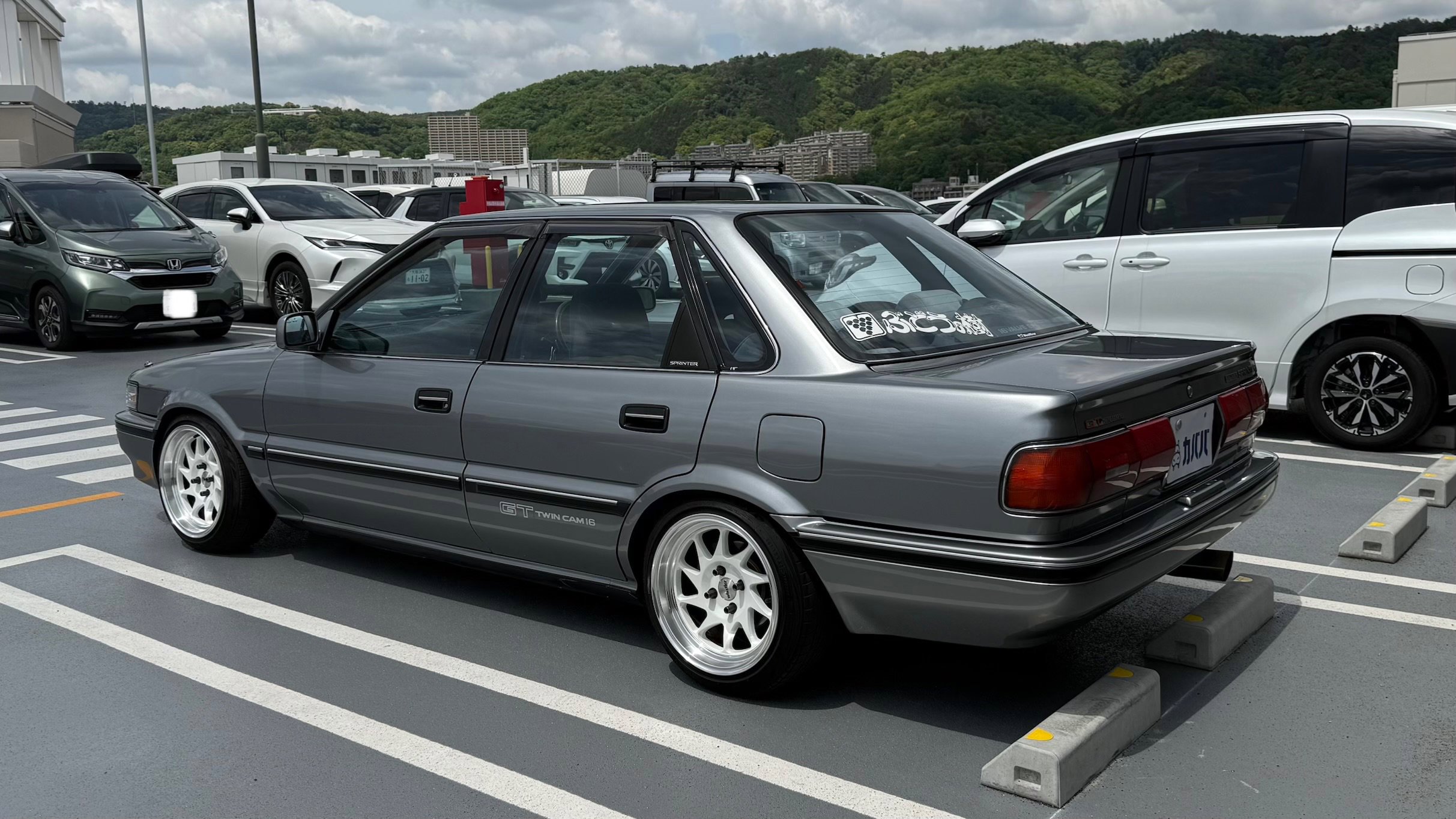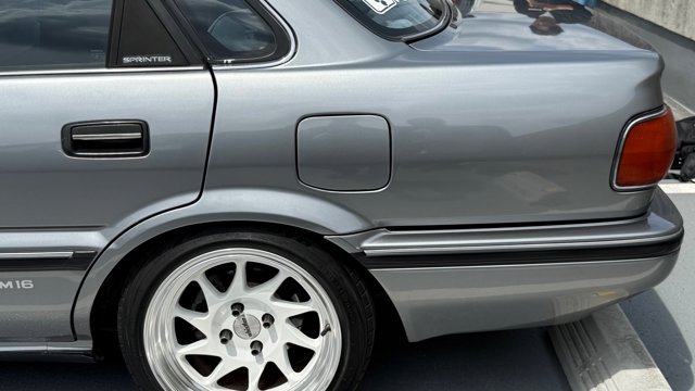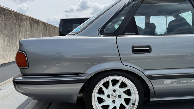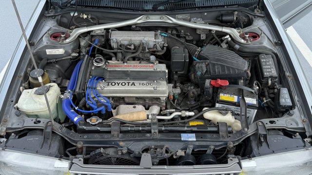 ボディタイプ セダン ドア数 4ドア 乗員定員 5名 型式 E-AE92 全長×全幅×全高 4225×1655×1360mm ホイールベース 2430mm トレッド前/後 1445/1425mm 室内長×室内幅×室内高 1780×1360×1150mm 車両重量 1020kg エンジン型式 4A-GE 最高出力 140ps(103kW)/7200rpm 最大トルク 15.0kg・m(147.1N・m)/6000rpm 種類 水冷直列4気筒DOHC16バルブ 総排気量 1587cc 内径X行程 81.0mm×77.0mm 圧縮比 10.3 過給機 なし 燃料供給装置 EFI 燃料タンク容量 50リットル 使用燃料 無鉛プレミアムガソリン