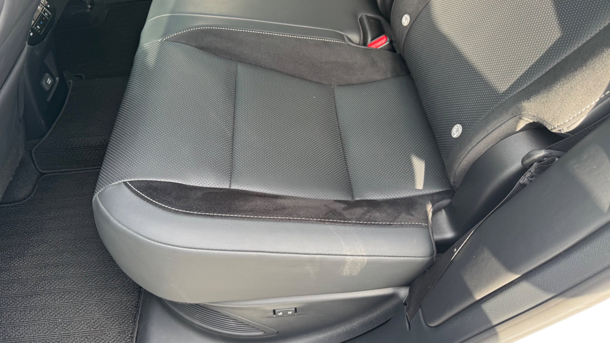 2023年式 レクサス RX 500h Fスポーツパフォーマンス 【カタログ値】 型式 5AA-TALH17 全長×全幅×全高 4890×1920×1700mm ホイールベース 2850mm トレッド前/後 1650/1675mm 室内長×室内幅×室内高 1915×1615×1205mm 車両重量 2100kg エンジン型式 T24A-FTS 最高出力 275ps(202kW)/6000rpm 最大トルク 46.9kg・m(460N・m)/2000~3000rpm 種類 直列4気筒インタークーラー付ターボ+モーター 総排気量 2393cc 内径X行程 87.5mm×99.5mm 過給機 IC付きターボ 燃料供給装置 筒内直接+ポート燃料噴射装置(D-4ST) 燃料タンク容量 65リットル 使用燃料 無鉛プレミアムガソリン