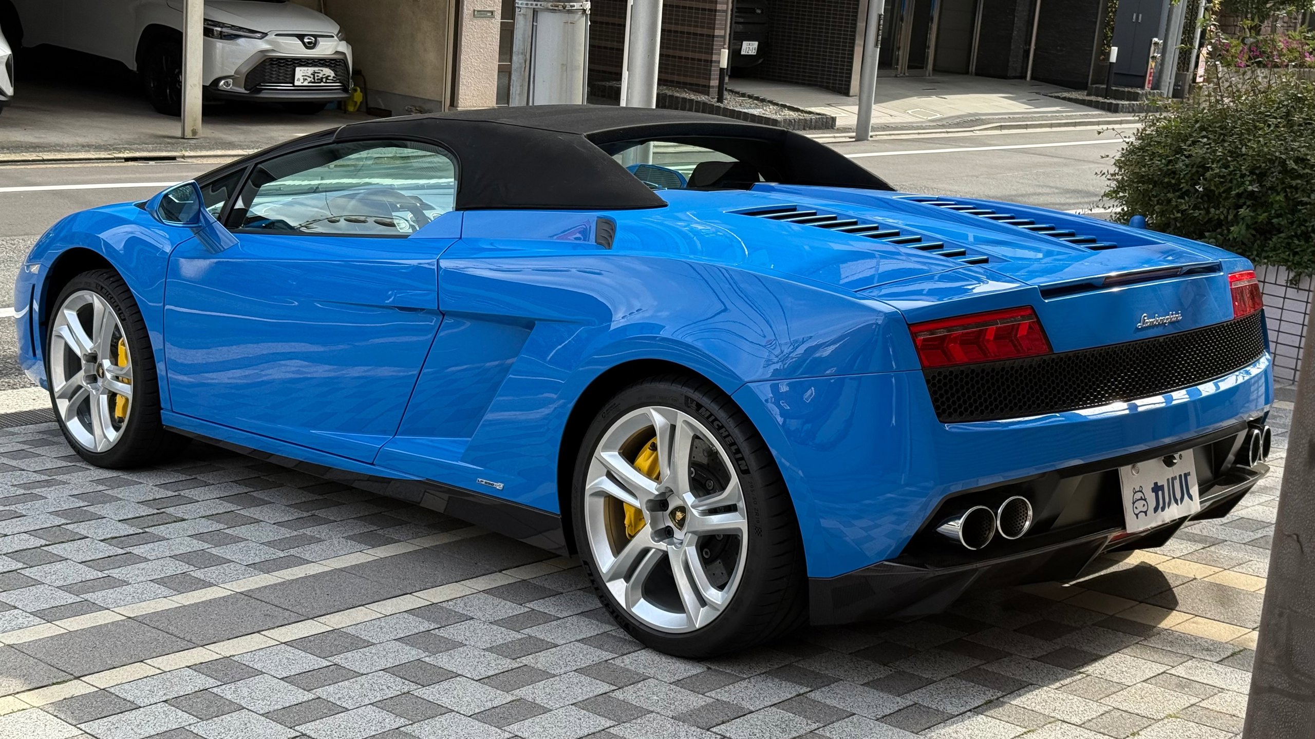 【カタログ値】 ボディタイプ オープン・カブリオレ・コンバーチブル ドア数 2ドア 乗員定員 2名 型式 ABA-GECEHB 全長×全幅×全高 4345×1900×1184mm ホイールベース 2560mm トレッド前/後 1632/1597mm 車両重量 1520kg 最高出力 550ps(405kW)/8000rpm 最大トルク 55.1kg・m(540N・m)/6500rpm 種類 V型10気筒DOHC40バルブ 総排気量 5204cc 圧縮比 12.5 過給機 なし 燃料供給装置 ランボルギーニ電子制御独立式ダイレクトイグニッション 燃料タンク容量 80リットル 使用燃料 無鉛プレミアムガソリン