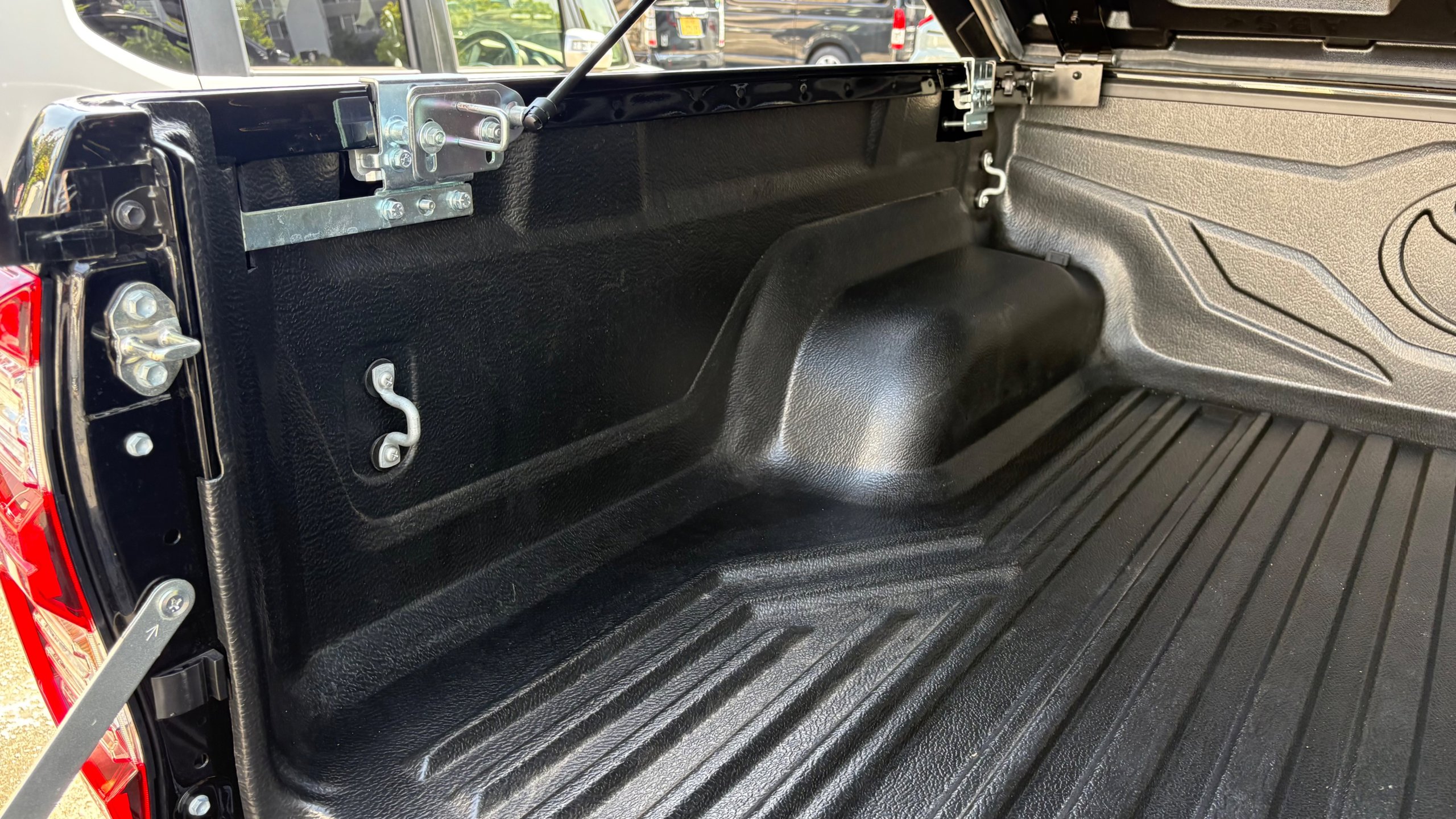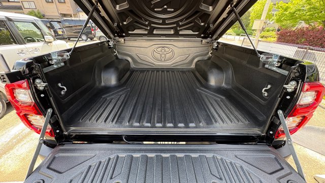 本車両にはトノカバーやカーフィルム、ヘッドライナーなどの装備が備わっており、装備面が充実した一台です。外装は人気のブラックカラーで、ハイラックスならではの重厚感をより一層引き立てています。 ご興味をお持ちの方は、ぜひお気軽にお問い合わせください。