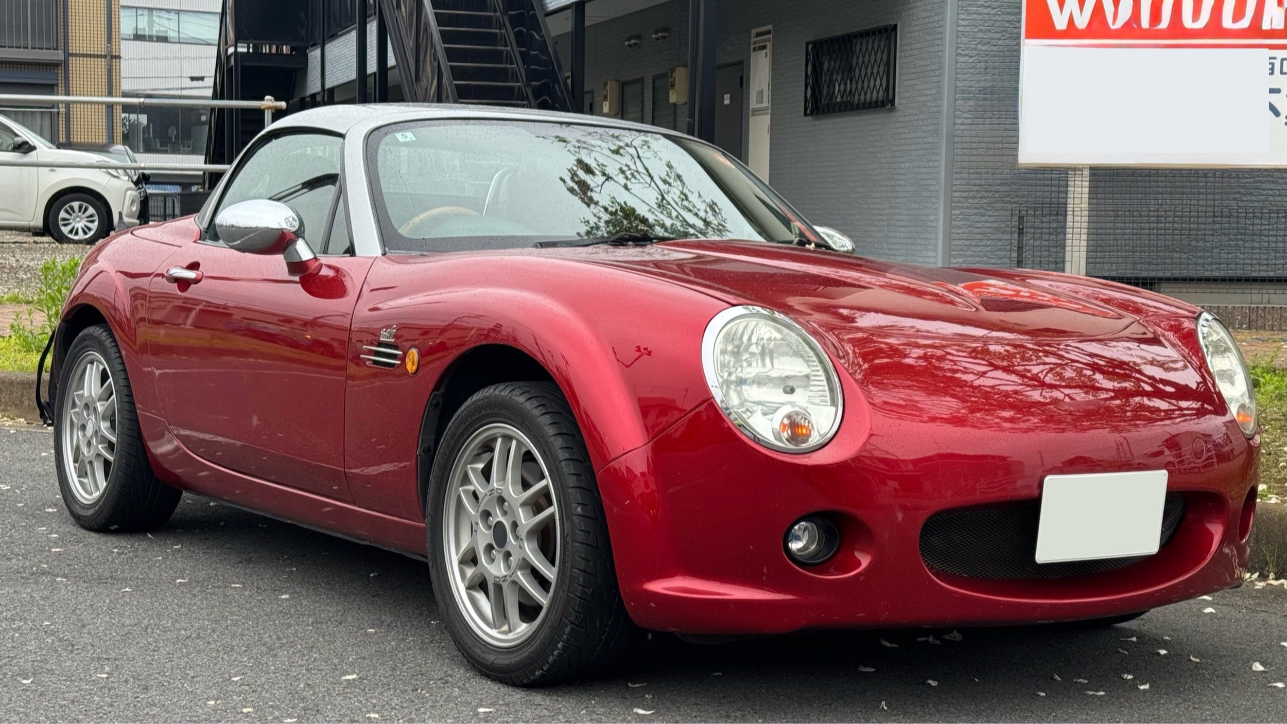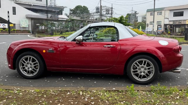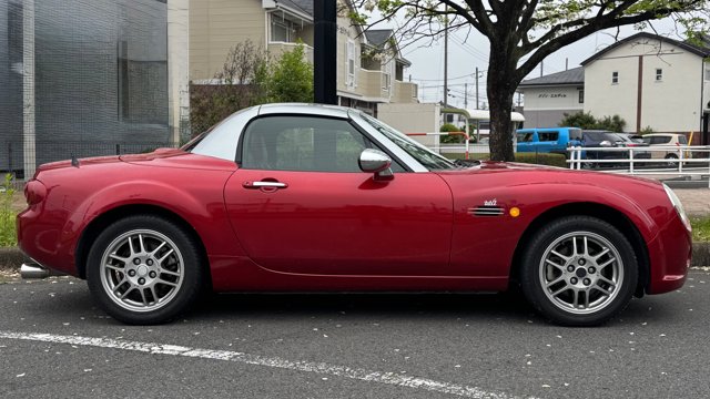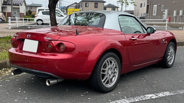 【この車両のアピールポイント】 2006年式のマツダ「ロードスター(NC型)」が出品されました!!グレードは、電動リトラクタブルハードトップ(RHT)を備えた上級仕様の「VS」。タンレザーの内装と6速MTを組み合わせた、走りと質感を両立した一台です。 走行距離は75,000km。最大の特徴は、オートバックスのカスタムブランド「モノクラフト」が手掛けた希少なボディ「MH1」として完成品を販売してたモデルです。 クラシカルかつエレガントな雰囲気を纏った、唯一無二のスタイルが魅力的なコンディション良好な個体です。 この車両のオススメポイント! 「超希少モノクラフトMH1。往年の名車を彷彿とさせるレトロ・モダンな造形美」 本車両の主役は、市場に滅多に出回ることのない「MONOCRAFT MH1」のボディキットです。 ベースのNC型ロードスターの面影を絶妙に残しつつ、往年の欧州スポーツカーのようなクラシカルなフロントフェイスへと変貌を遂げています。 ボディは鮮やかなレッドに塗装され、ルーフのシルバーとのコントラストが知的な印象を演出。足元には信頼の「O.Zレーシング」製アルミホイールを装着し、内装のサドルタンレザーと相まって、大人の遊び心を刺激するプレミアムな一台に仕上がっています。 【気になる車両の状態】 ■車内・エアコンのニオイ 車内でタバコ使用歴も無く、エアコンの吹き出し口からの臭いに関しては、不快な臭いは感じられませんでした。 ■エンジン始動と振動 取材時エンジンの始動や不穏な振動、各所の電装系の装備にも不具合や異音などは確認取れませんでした。 過去の修理歴として、純正ショックを6万キロくらいで変更しており、納車直後にエアコンの修理(ホース関係)、2025の夏にも約30万円でエアコンを修理されて、現在は快調にエアコンの動作しております。 ■ガラスのキズ・状態 飛び石は数点見受けられます。[車検に影響無し] ■外装 フロント:ボンネット、バンパーに傷、バンパーには塗装の割れが数点見受けられます。 サイド:アルミ傷、ドアエッジ傷あり、各所に細かい小傷があり リア:リアゲートに傷、バンパー傷、割れがございます。 全体的には艶感などはまだ感じられる程度です。 ■内装:シートには年数相応の擦れ・使用感はございます。 過去に車内に犬を4回程度乗せられた事があり、シートの裏やレール内など動物毛が見受けられます。※数年前のことですので、獣臭などは特に感じ取れませんでした。 《重要》購入前にご確認をよろしくお願いします。 ■本車両は10年以上前の車両のためノークレームノーリターンのお取引となります。 ■本車両に対する予防整備(消耗品等)の不具合、劣化等に関しては免責事項となります。 ■電装系不具合でCDの出し入れが出来ないです。 ■ 元色サンライトシルバーメタリック(22V)にレッドの塗装が実施されてます。 ■フロントサイドメンバー脱着跡、ボンネット板金塗装歴等がありますので「修復歴あり」に該当します。※過去のユーザー様の経歴なので事故の経緯は不明です。 お問い合わせをお待ちしております! お車のクオリティや動画での詳細な状態(査定スタッフの見解、タイヤのヒビなど)が気になる方は、どうぞお気軽にお問い合わせください!お客様のオンライン購入をサポートいたします!