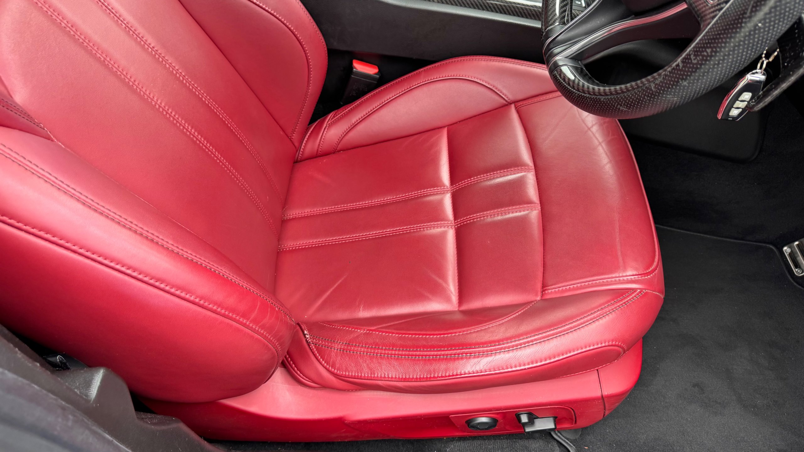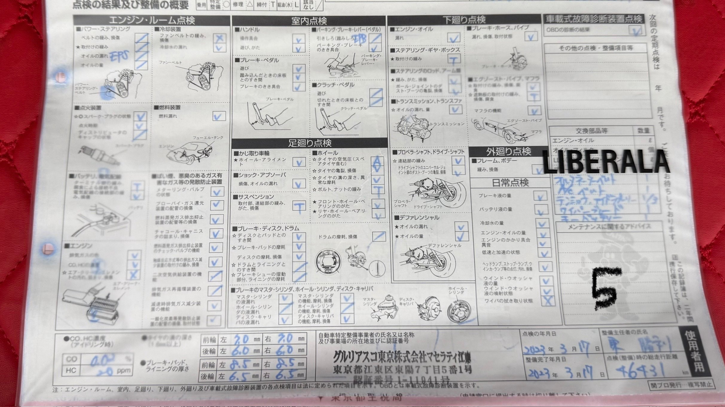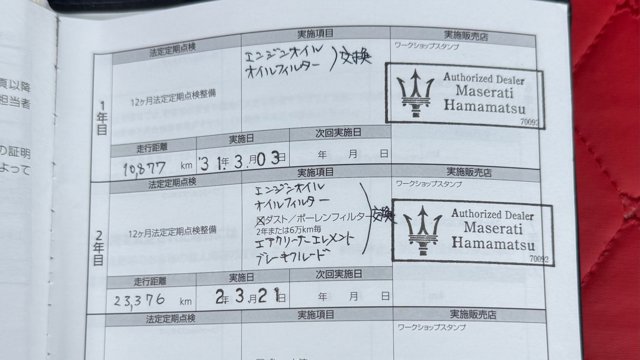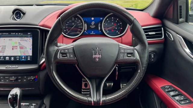 【車両おすすめ装備】 ◾︎外装 ・ブルーエモツィオーネ ¥135,000 ・カーボンパッケージ ¥600,000 ・サンルーフ ¥170,000 ・21インチチターノホイール¥280,000 ・レッドキャリパー ¥15,000 ・可変バルブリモコン ¥80,000 ・ホイール中央部丸カーボン ・左右6か所追加カーボン ◾︎内装 ・内装カラーロッソ ¥260,000 ・リア プライバシーガラス ¥55,000 ・フルナチュラルレザーパッケージ ¥400,000 ・harman kardonスピーカー ¥135,000 ・フルセグTV ・ロゴ カーテシランプ(Logo CourtesyLamp) ・ドライブレコーダー:ユピテルSN-TW9900d(前後カメラ) ・シートヒーター ・簡易冷蔵庫 ・マセラッテイ傘 ・トランクルーム赤カーペット ・ETC車載器 ◾︎安全 ・ドライバーズアシスタンスパッケージ ¥180,000 ・アラウンドビューモニター ・交通標識認識 ・アドバンストブレーキアシスト ◾︎グランスポーツ専用装備 ・ソフトクローズドア ・スカイフックサスペンション 【エンジンオイル交換】 走行61,000kmでマセラティ江東で実施(2025.7)SHELL HELIX ULTRA RACING 5W40 【タイヤ】 すべてマセラティ指定のピレリタイヤ 後輪2つを新品に交換(2025.3) PIRELLI P ZERO PZ4 285/30ZR21 100YXL MGT マセラティ承認タイヤ 【2025.3車検】 ブレーキフルード交換、スパークプラグ交換、ドライブベルト交換、エアコンフィルター交換、ワイパーブレード交換 【コーティング】 • ECO plusダイヤモンドキーパー 2022/11/17 2025/4/1メンテナンス 〇モデルの特徴 イタリアンラグジュアリーを体現するスポーツセダン、マセラティ ギブリ グランスポーツ。 流麗で存在感のあるボディラインに加え、専用エアロやスポーツバンパー、レッドキャリパーなどが装備され、ひと目で特別感を感じられる仕上がりです。 フェラーリ製3.0L V6ツインターボエンジンは力強く伸びやかな加速を実現し、マセラティらしい官能的なサウンドも魅力のひとつ。 上質なレザーインテリアやスポーツシート、パドルシフト付きステアリングなど、走りと快適性を高次元で両立しています。 〇セールスポイント まず目を惹くのは、希少な「ブルーエモツィオーネ」のボディカラーに、総額60万円のカーボンパッケージを装着した存在感抜群のエクステリア。さらに21インチチターノホイールやレッドキャリパー、追加カーボン施工により、標準車とは一線を画すスポーティかつラグジュアリーな仕上がりとなっています。可変バルブリモコン付きで、マセラティらしい官能的なサウンドも存分に楽しめます。 内装は情熱的なロッソカラーにフルナチュラルレザーパッケージを組み合わせ、イタリア車ならではの華やかさを演出。 さらに、ドライバーズアシスタンスパッケージやアラウンドビューモニター、交通標識認識など安全装備も充実。 2025年車検時には消耗品をしっかり交換済みで、オイル管理も明確。機関面までしっかり手が入った、安心感のあるコンディションも大きな魅力です! 【車両状態】 ・左フロントドア再塗装(前オーナーのため詳細不明) ・フロントガラス、ボンネット、フロントバンパー飛び石 ・フロントバンパー左、左リアドア線傷 ・ホイールガリ傷 ・ドアピラーカーボン1部剥がれ ・スペアキーは1度も使用したことが無いので、恐らく電池切れです ※本車両に対する予防整備(消耗品等)の不具合、劣化等に関しては免責事項となります。