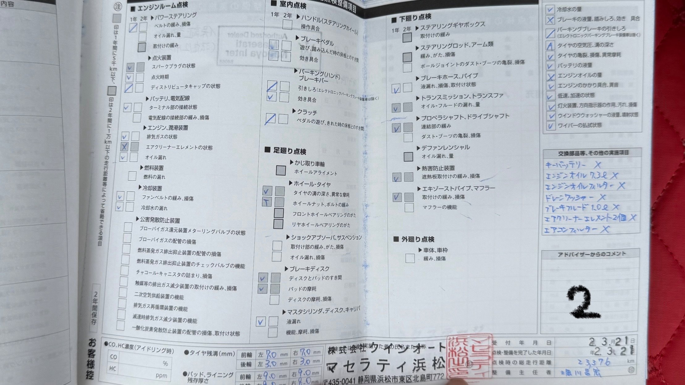 車両状態(ギブリ グランスポーツ)